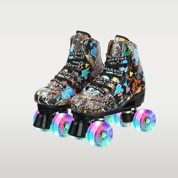 Hightop Shiny PU Leather Rubber Classic Roller Artistic for Outdoor Skating (Pink(no Flash Wheel),8.5)
